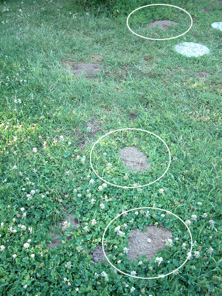 で、去年の12月、塀の近くを40cm位掘ったら大きなモグラの主道路を発見。(このモグラはお隣さんから侵入してきたと信じている)この主道路に奥深くナフタリンを5個程置いて入り口を石でふさぎ、土をかぶせたら、数ヶ月モグラの形跡をみませんでした。