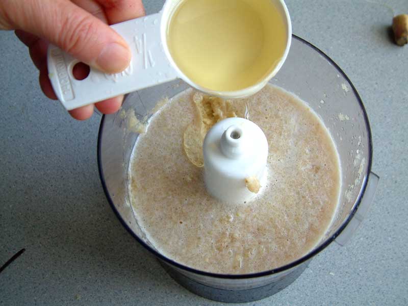 大ピューレーになったらサラダオイルを加えて更に攪拌してベトナム風マリネの完成。
