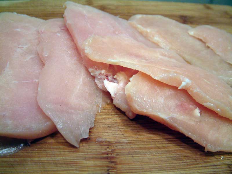 大チキンや豚肉は5mm程に薄く切って、4時間〜一晩マリネします。