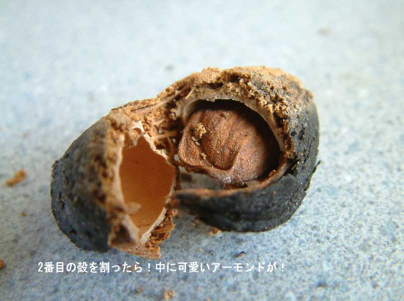 とすると、白い膜が殻になって、なかのジェリー部分がアーモンドになるんだ!