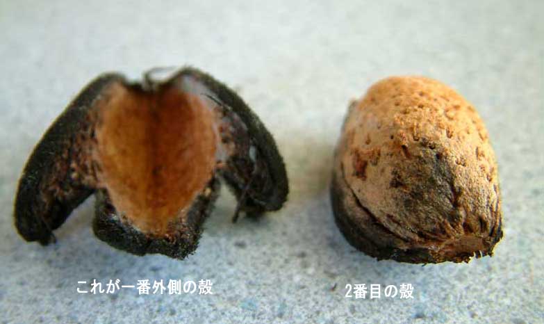 真っ黒の殻を割ると(かなり乾燥していると見えて簡単に爪で割れました)