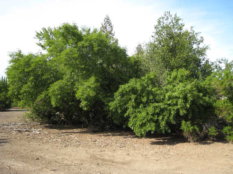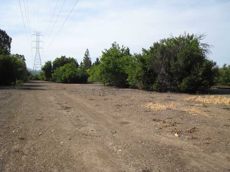 この空き地に沿って例のビターアーモンドの木が生えているのです。