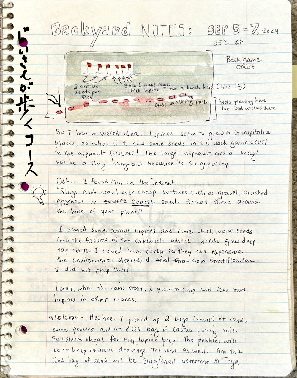 今度は うちの裏庭の空き地のアスファルトの割れ目に植えてみました