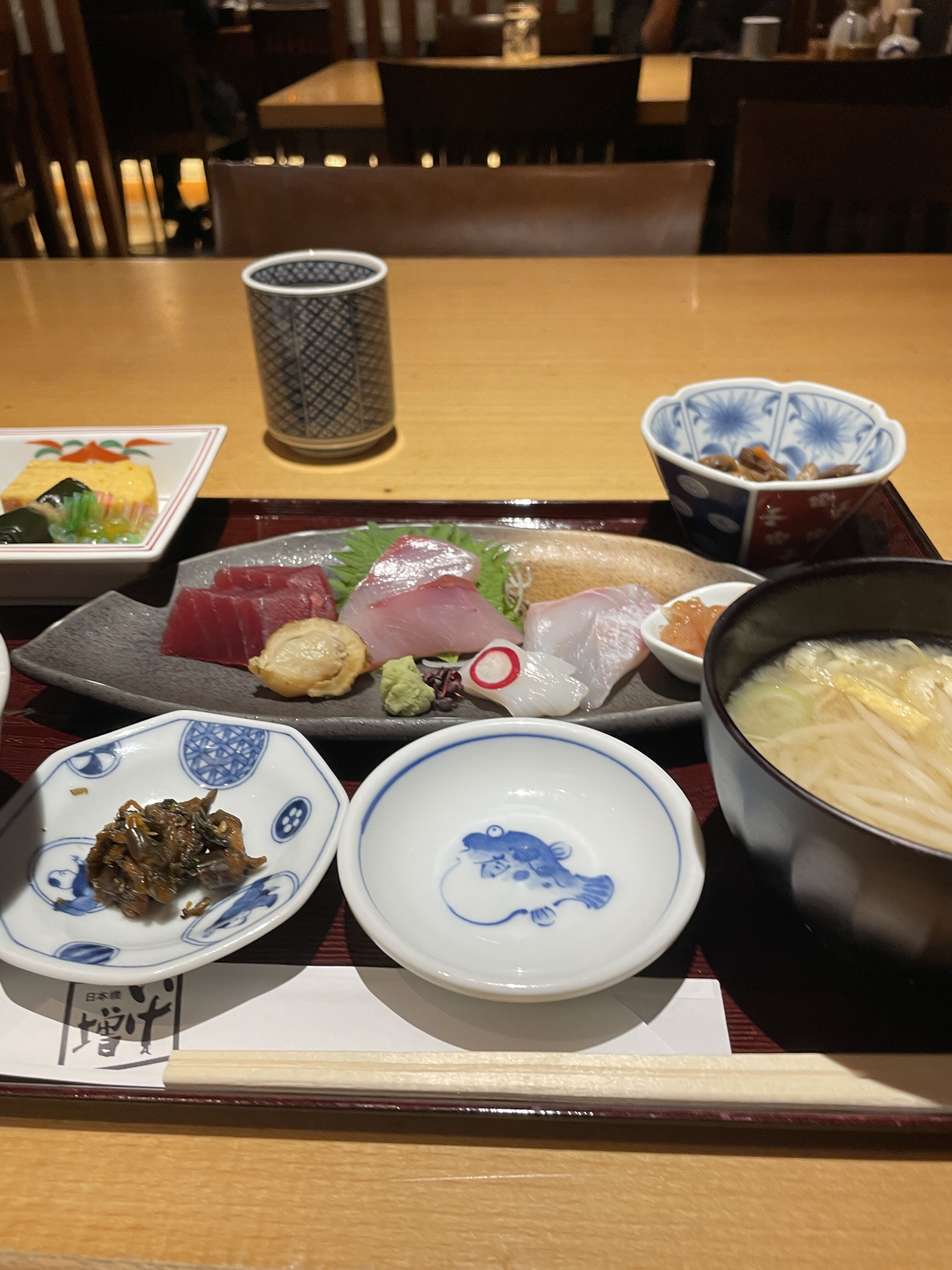 日本橋の和食のレストランでお刺身定食