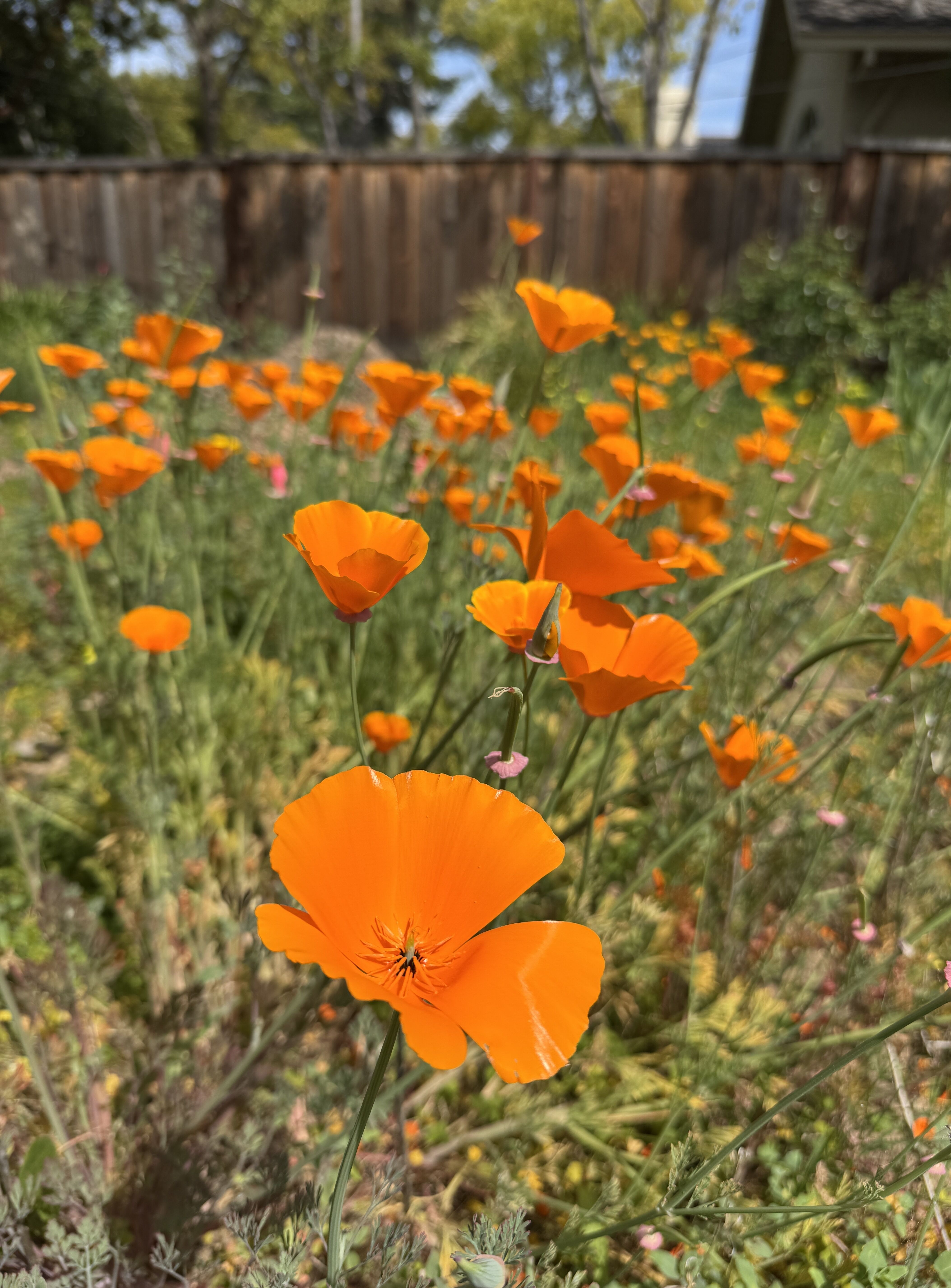 カリフオルニアポピー、我が家の庭、いいえ野原にも雑草の中で咲いています。